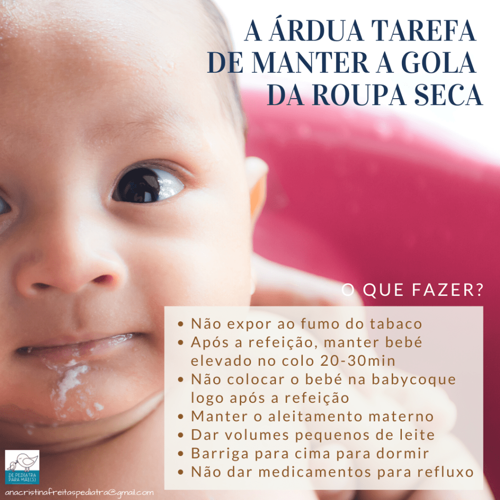 Mas se o bebé regurgitar com muita frequência e não ganhar peso adequadamente e/ou recusar comer ou tiver um comportamento muito irritado durante a refeição, é melhor falar com a pediatra para perceber se é preciso fazer algo mais.