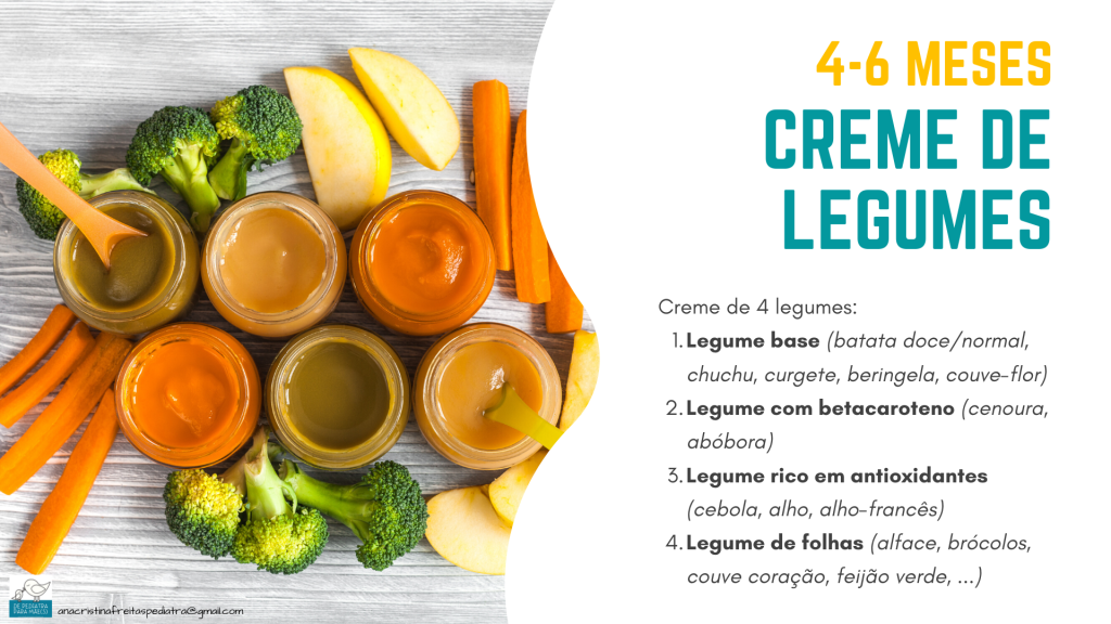 👶 façam creme de legumes para 4-6 refeições e conservem no frigorífico (48h) ou congelador