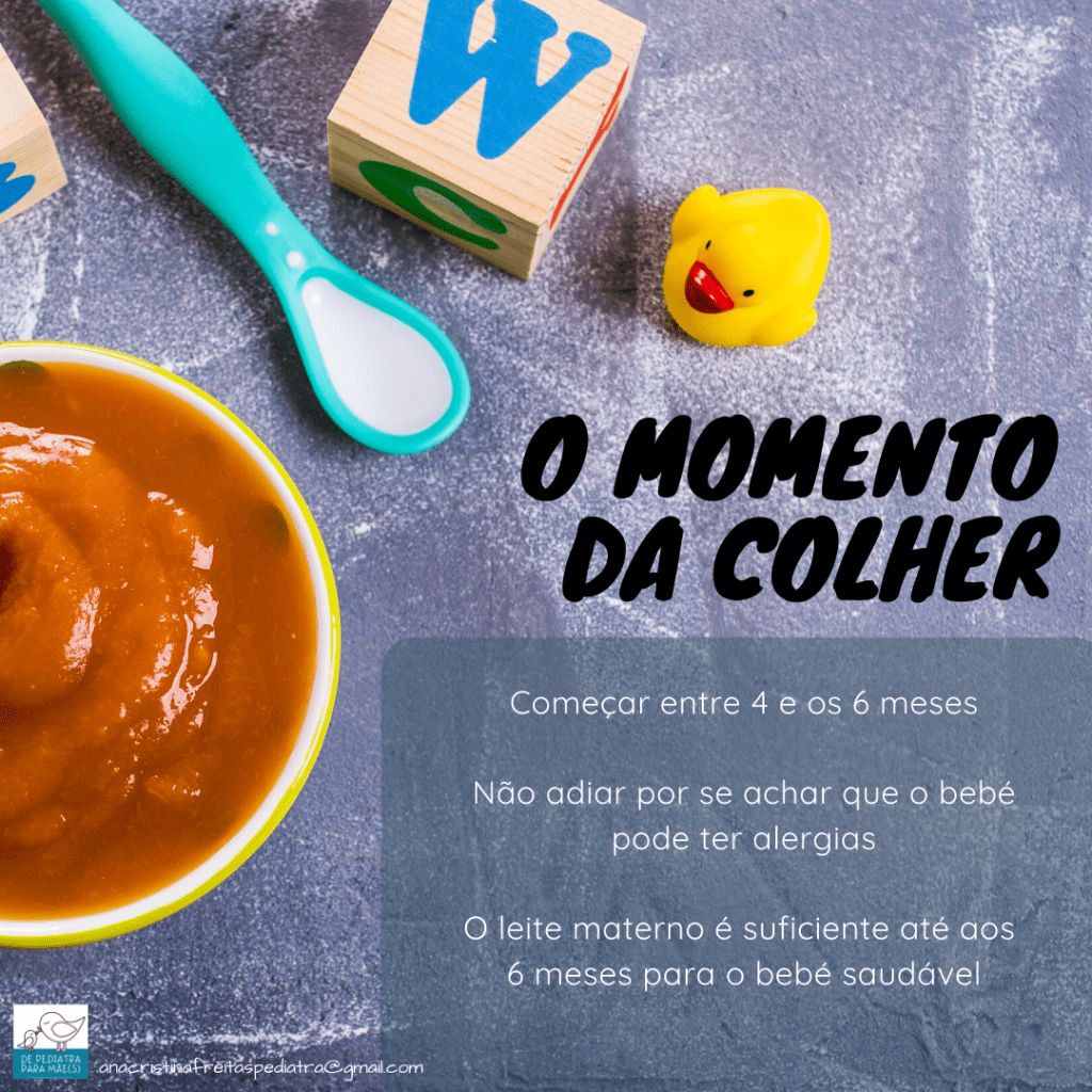 Por todos estes motivos, está bem estabelecido que a diversificação alimentar deve começar entre os 4 meses e 1 semana e 6 meses e 1 semana.